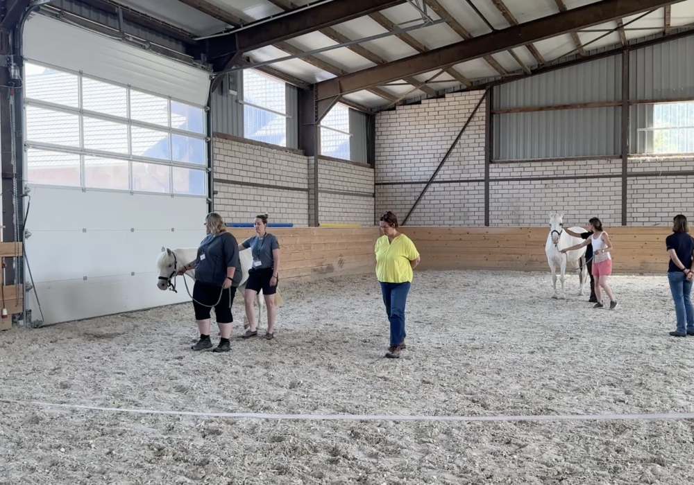 Die Arbeit mit dem Pferd geschieht nur vom Boden aus- in ruhiger und entspannter Atmosphäre. Reit- und Pferdekenntnisse sind nicht erforderlich, da nicht geritten wird.